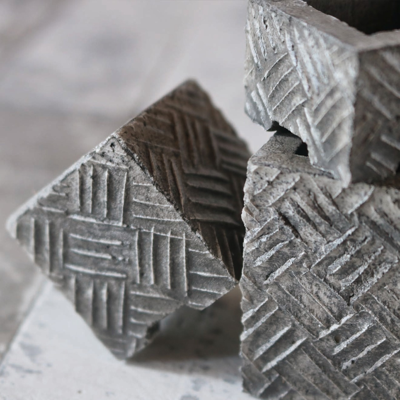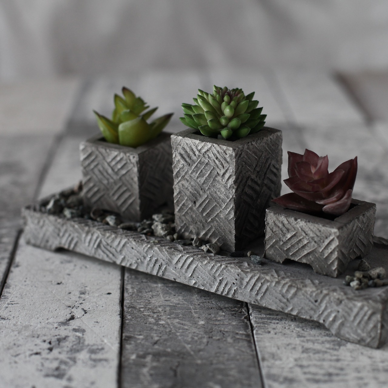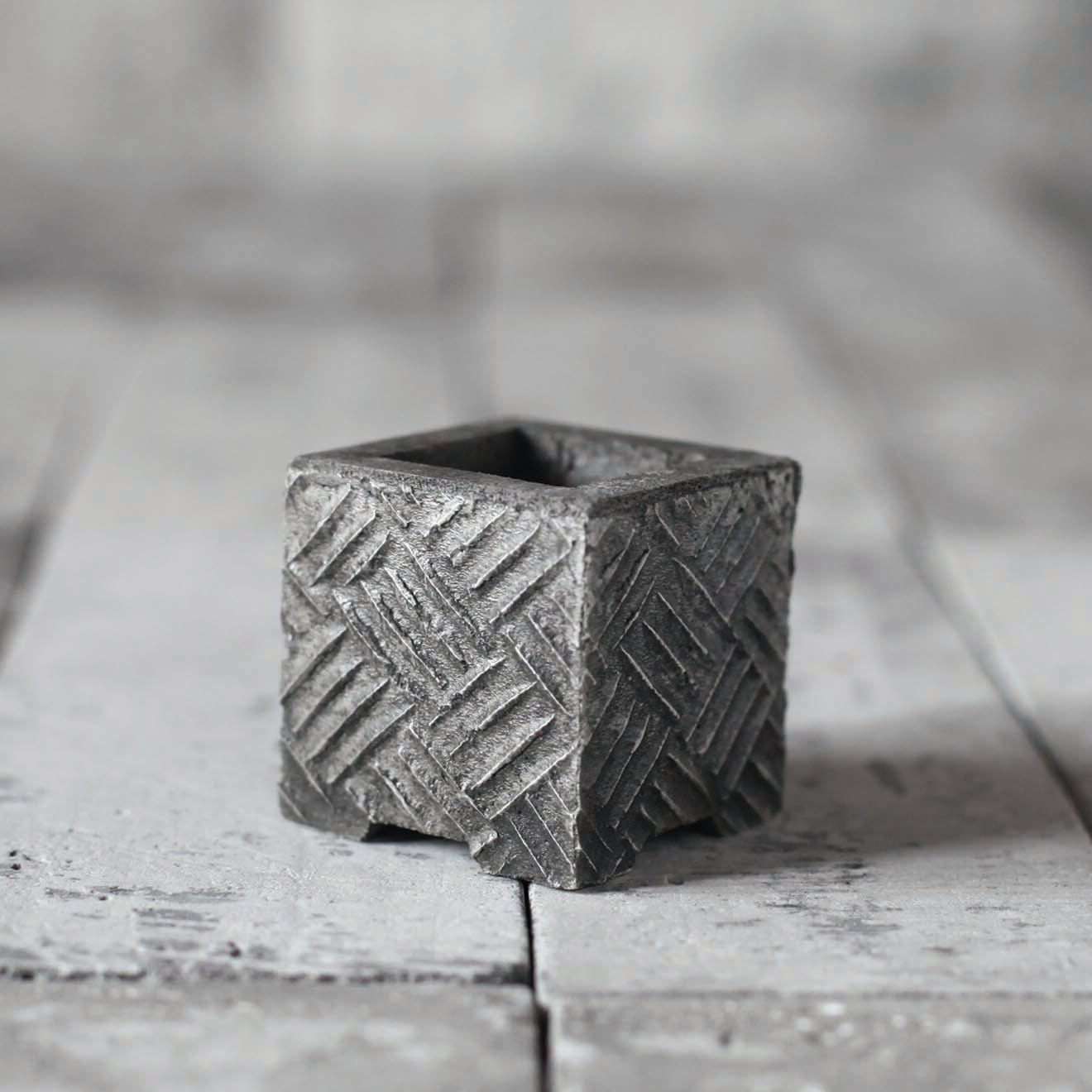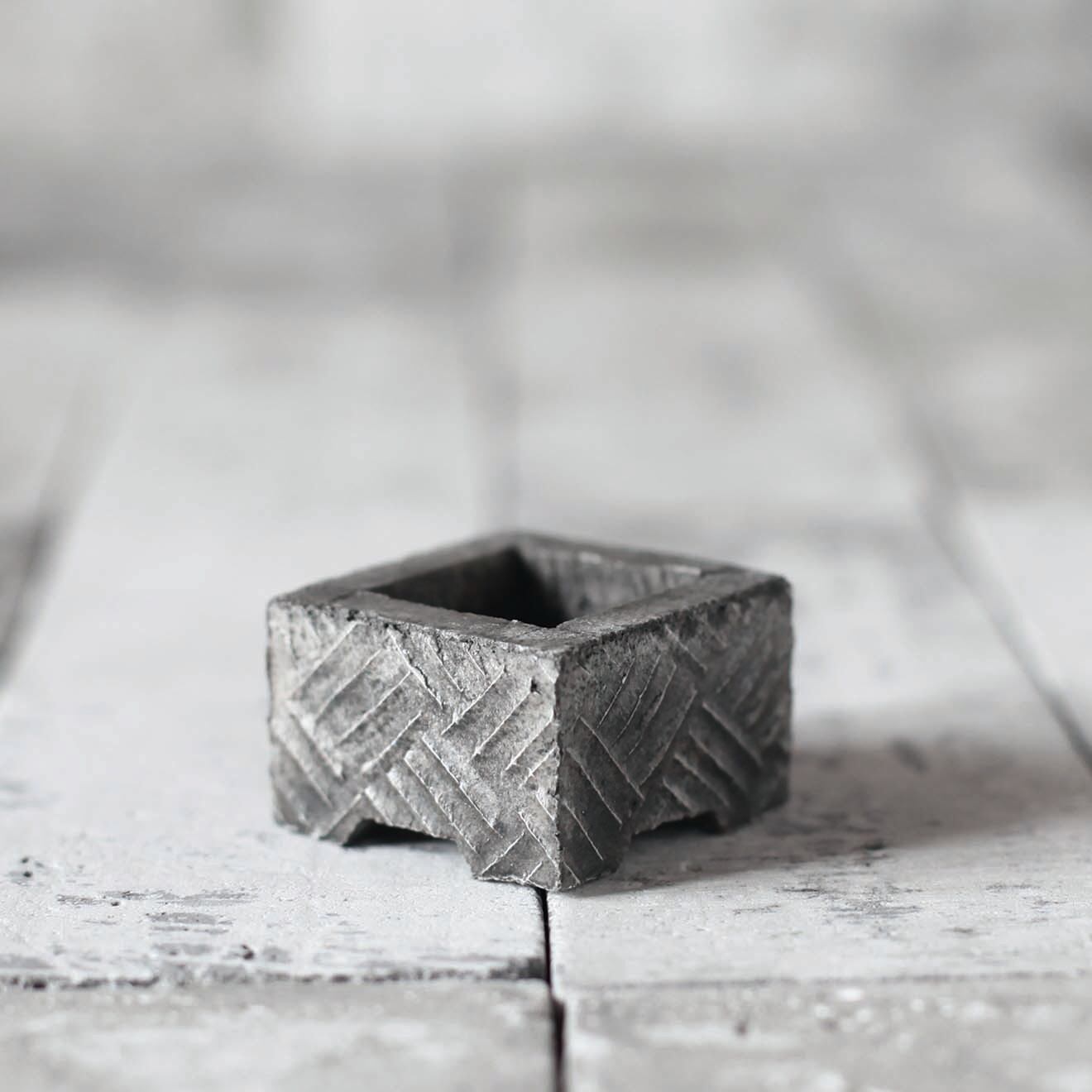 その中の一つ「The FABRIC CHECK」は、その名の通り「 一本一本の系が織りなす織物」をモチーフにした、優しくも逞しいデザイン。窓枠や洗面台・机上などの狭く細いスペースでも気軽にグリーンが楽しめるスリムな設計。個性的なルックスだけでなく、小さいながらも保水性や水捌けもしっかり考慮し植物にも優しい。ミニ鉢はL・M・Sの 3サイズが1セットに。鉢サイズに見合ったグリーンを植えるだけで、いとも簡単に「侘び寂び」が表現できる設計。また、ミニ鉢と統一感のあるプレートもセットに。そのクールな世界観はロビーならでは。植物はちょっと苦手という方でも、飾るだけでインテリア小物としてお部屋を華やかに。一つ々々丁寧にロビー・ハンソン本人がハンドメイドで仕上げた逸品。ギフト・プレゼントにも最適。