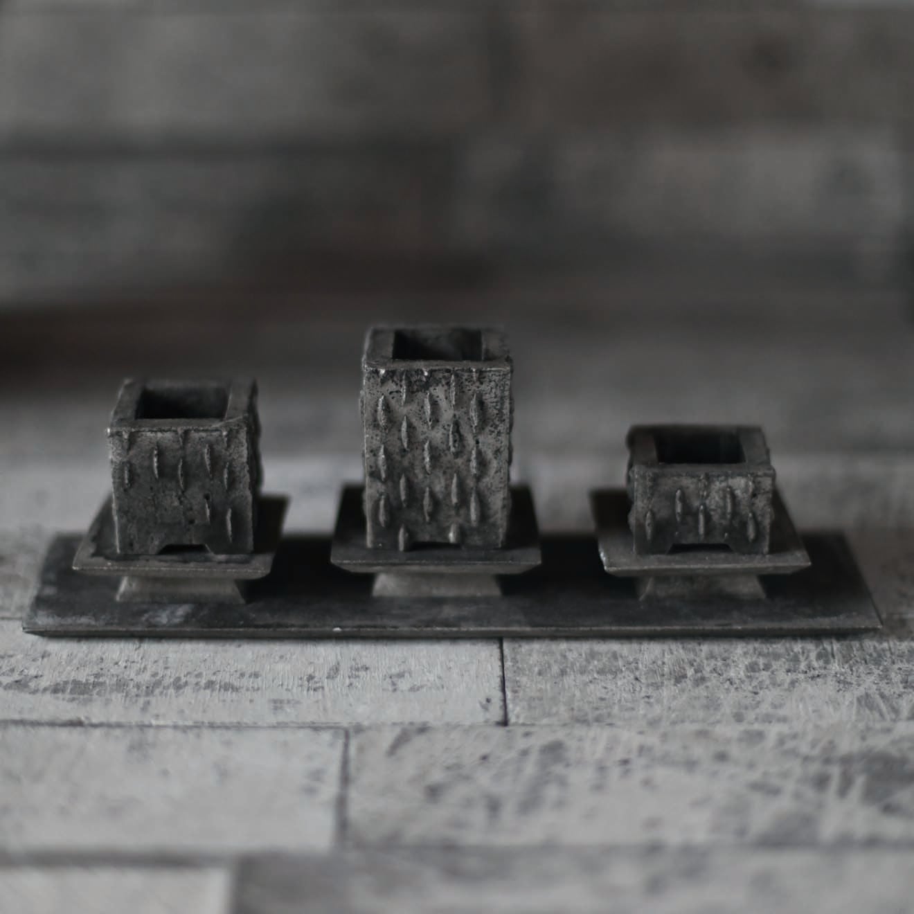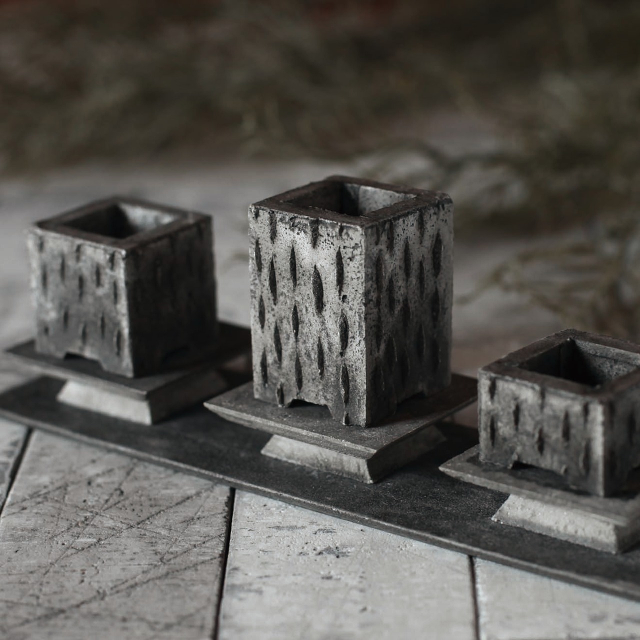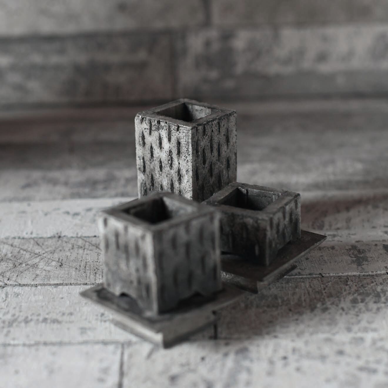 その中の一つ「The RAINY DROPS」は、 その名の通り「自然を潤す恵みの雨」をモチーフにしたデザイン。窓枠や洗面台・机上などの狭く細いスペースでも気軽にグリーンが楽しめるスリムな設計。個性的なルックスだけでなく、小さいながらも保水性や水捌けもしっかり考慮し植物にも優しい。ミニ鉢はL・M・Sの 3サイズが1セットに。鉢サイズに見合ったグリーンを植えるだけで、いとも簡単に「侘び寂び」が表現できる設計。また、ミニ鉢と統一感のあるプレートもセットに。そのクールな世界観はロビーならでは。植物はちょっと苦手という方でも、飾るだけでインテリア小物としてお部屋を華やかに。一つ々々丁寧にロビー・ハンソン本人がハンドメイドで仕上げた逸品。ギフト・プレゼントにも最適。