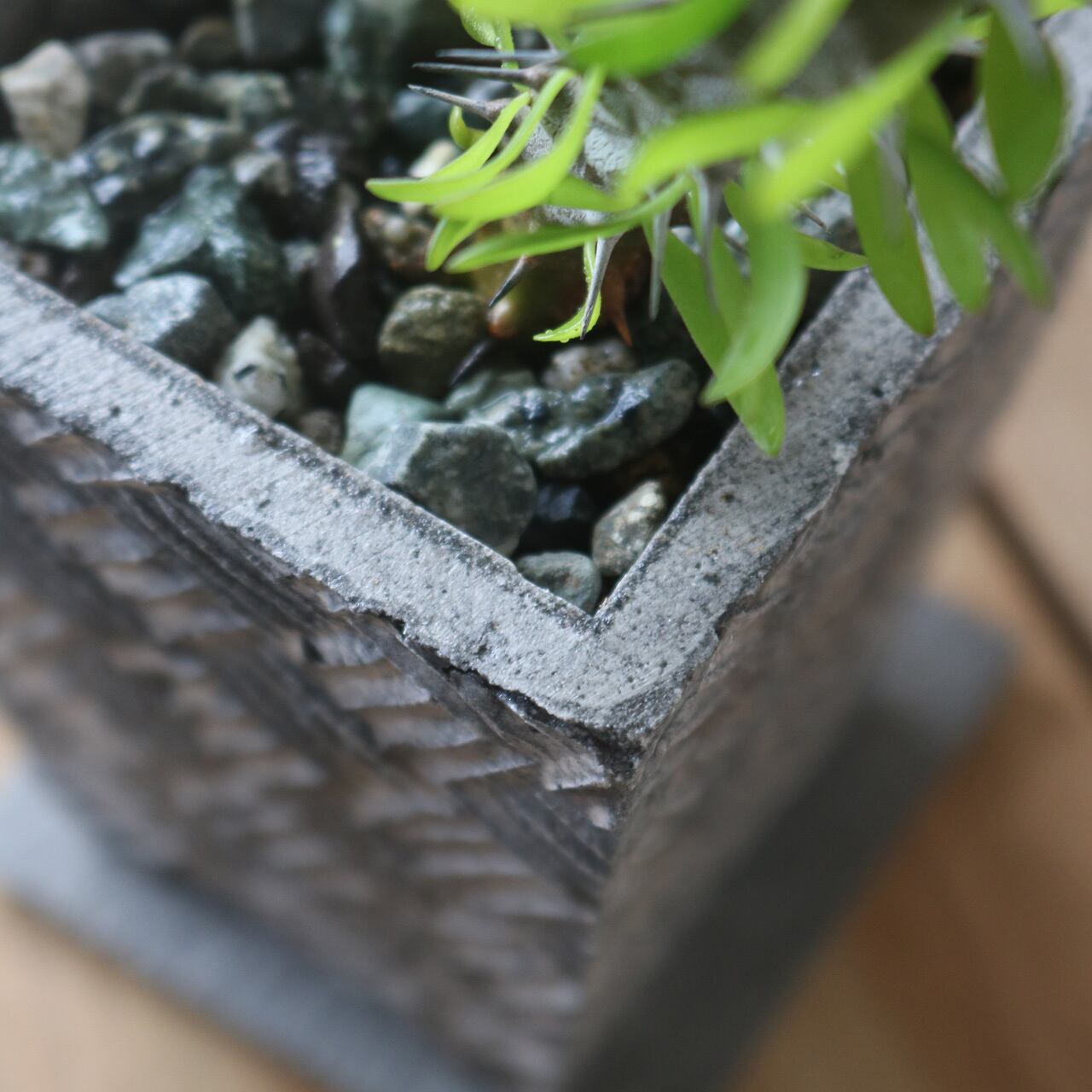 デメリットでもあるセメントの通気性の悪さ。ミニサイズの鉢にとっては逆に好都合なんだよ。乾きがちなミニポットにとって、乾燥対策はとても重要だからね。