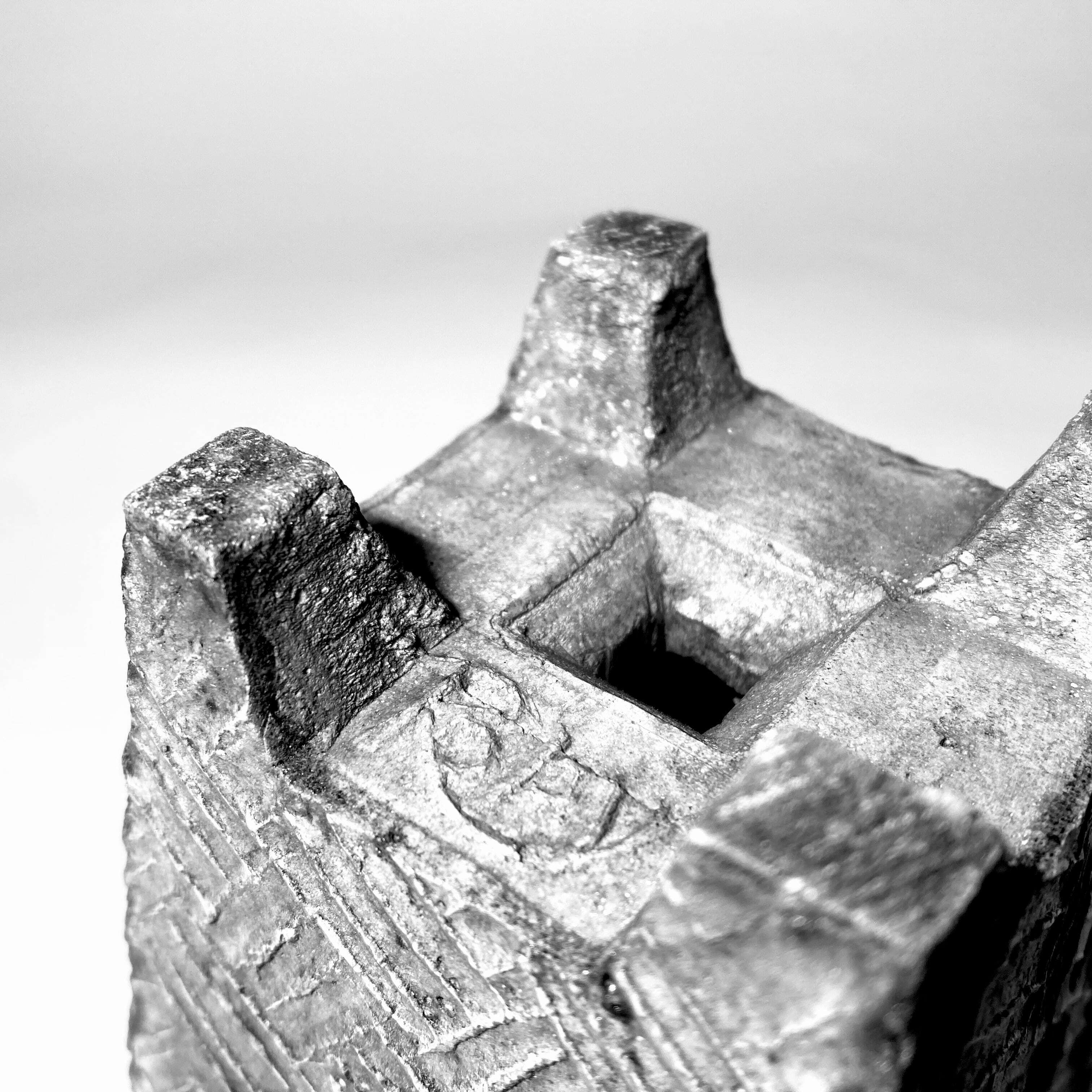 日本古来のインクである「墨」でセメントを染め上げて作る、独特な手法のロビー作品は、欠ける事により素地の色が露出する事があります。しかし、ロビーはこう言います。「それも含めて僕の作品を楽しんで欲しい」と。もし欠けてしまったら、4B程度の鉛筆で欠けた部分を軽く擦り、指で馴染ませて完了。作品にビンテージ感が増し、より愛着も増す事でしょう。つるっとした一般的な陶器とは異なり、環境次第では苔が活着したり、長年の風雨で染みや色ムラができる事もあるでしょう。植物の成長と共に、作品(植木鉢)の成長も是非楽しんでください。