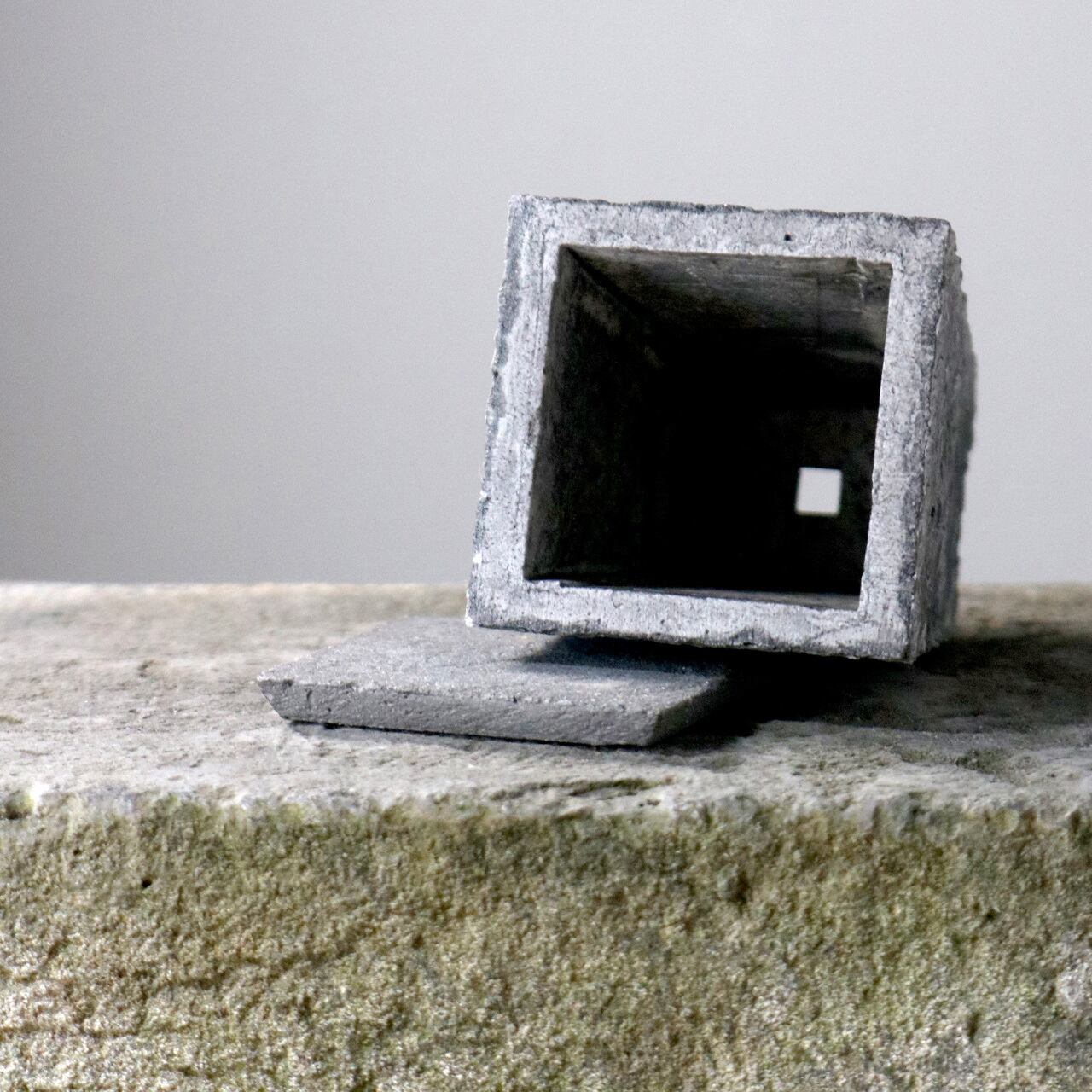 日本古来のインクである「墨」でセメントを染め上げて作る、独特な手法のロビー作品は、欠ける事により素地の色が露出する事があります。しかし、ロビーはこう言います。「それも含めて僕の作品を楽しんで欲しい」と。もし欠けてしまったら、4B程度の鉛筆で欠けた部分を軽く擦り、指で馴染ませて完了。作品にビンテージ感が増し、より愛着も増す事でしょう。つるっとした一般的な陶器とは異なり、環境次第では苔が活着したり、長年の風雨で染みや色ムラができる事もあるでしょう。植物の成長と共に、作品(植木鉢)の成長も是非楽しんでください。