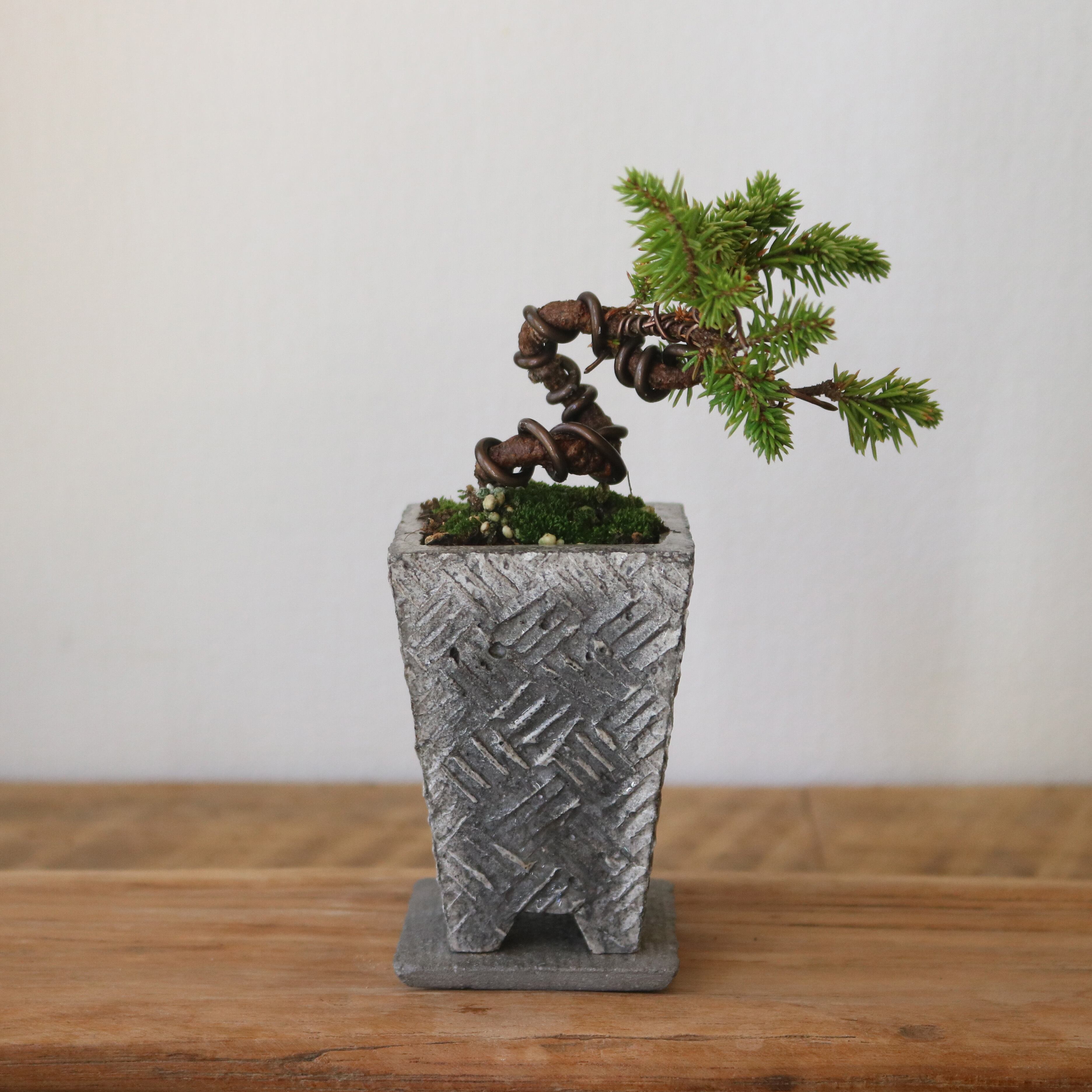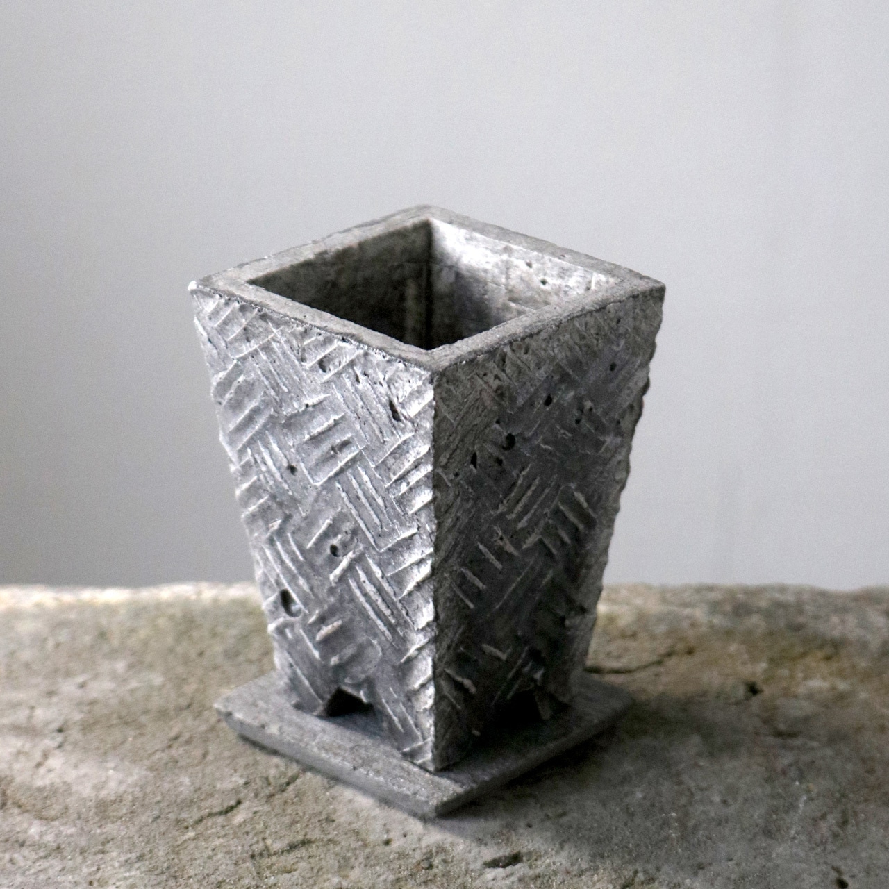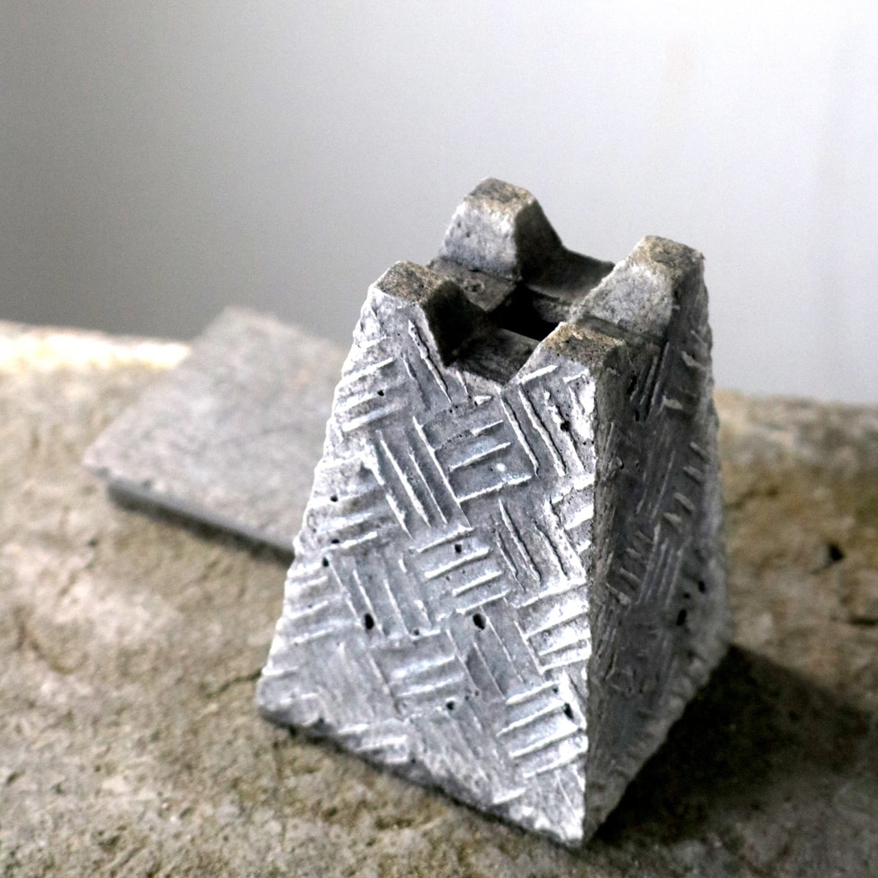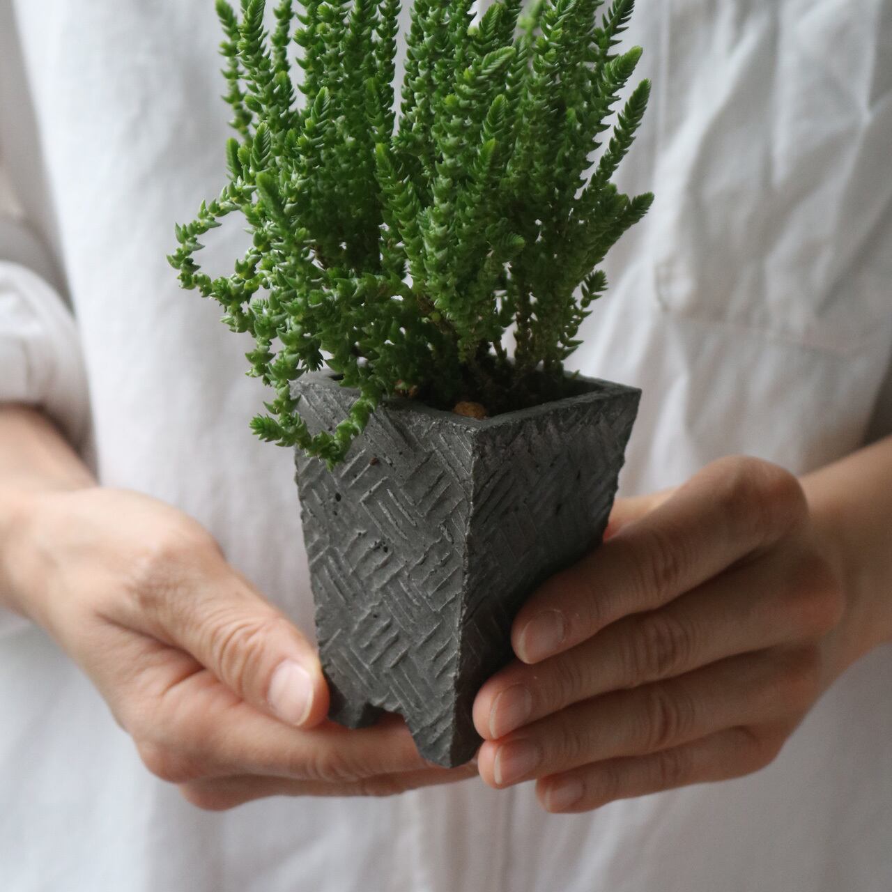 グリーンをこよなく愛するロビー。そんな彼が今注目しているのは「日本の盆栽」。日本古来の伝統美をリスペクトしつつ、現代のライフシーンに融合する新たな素材とテイストで開発されたのが、このNeo Japonism ミニ盆栽鉢シリーズ。その中の一つ「The 網代格子」は「漁網」が由来の日本に古来から受け継がれる伝統紋様。古くから広く民衆に親しまれてきた紋様です。ロビーはその日本古来の古典柄をセメントという現代的素材と融合させ、ミニ盆栽鉢シリーズとして展開。日本のライフシーンを考慮し、机上などの狭いスペースでも気軽にグリーンが楽しめるスリムな設計。個性的なルックスだけでなく、小さいながらも保水性や水捌けもしっかり考慮し植物にも優しい。鉢サイズに見合ったグリーンを植えるだけで、いとも簡単に「侘び寂び」が表現できる。また、ミニ鉢と統一感のあるプレートもセットに。そのクールな世界観はロビーならでは。一つ一つ丁寧にロビー本人が仕上げた逸品。ギフト・プレゼントにも最適。