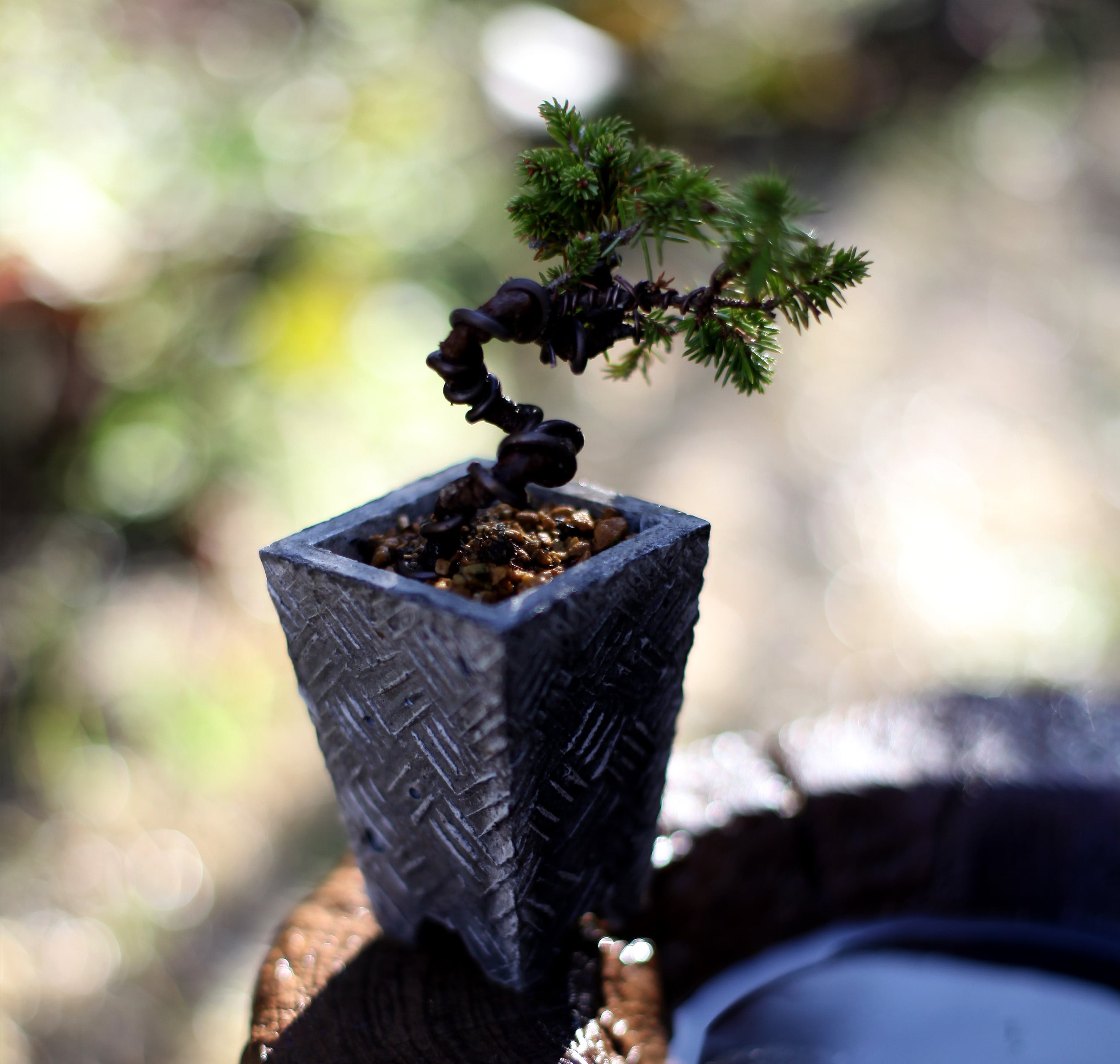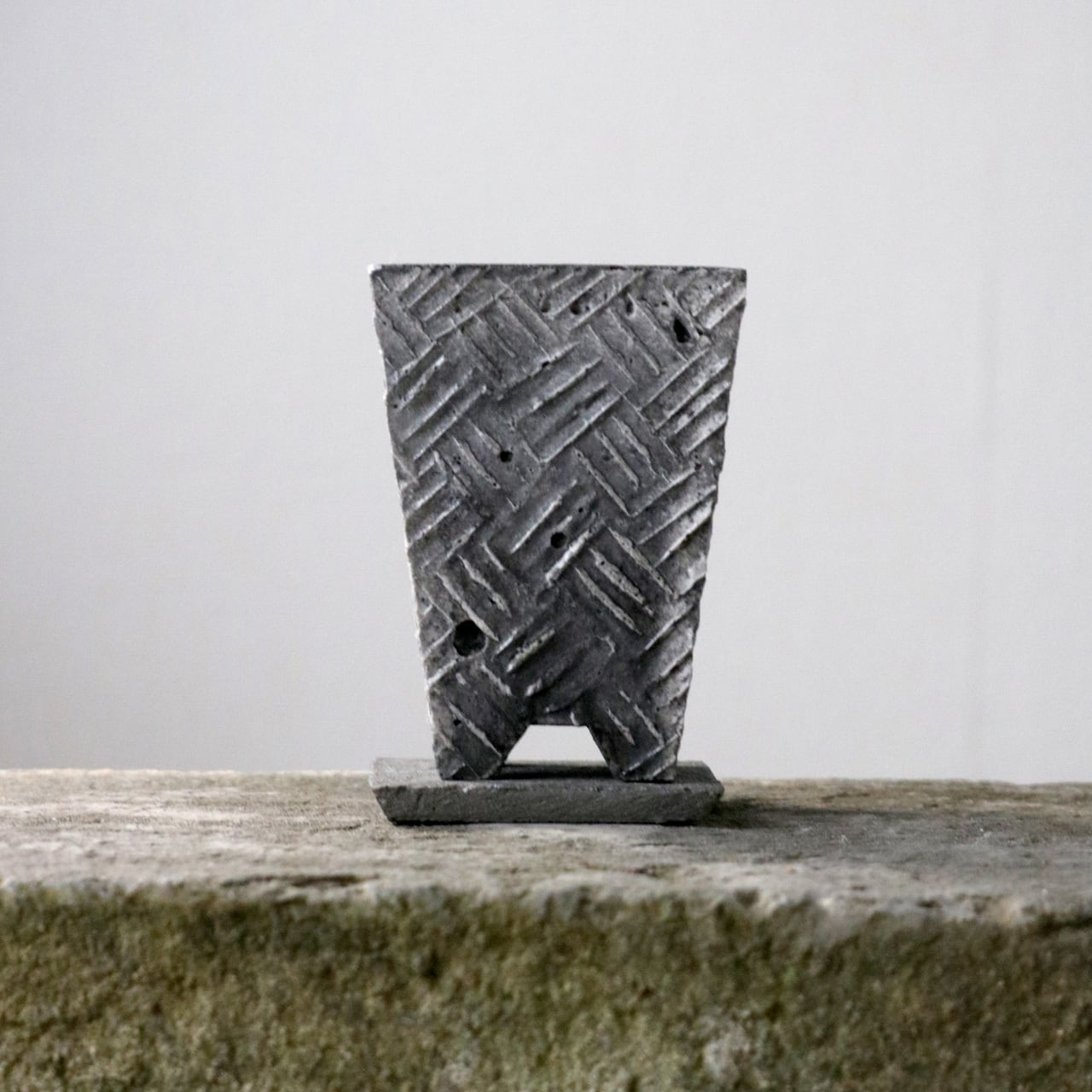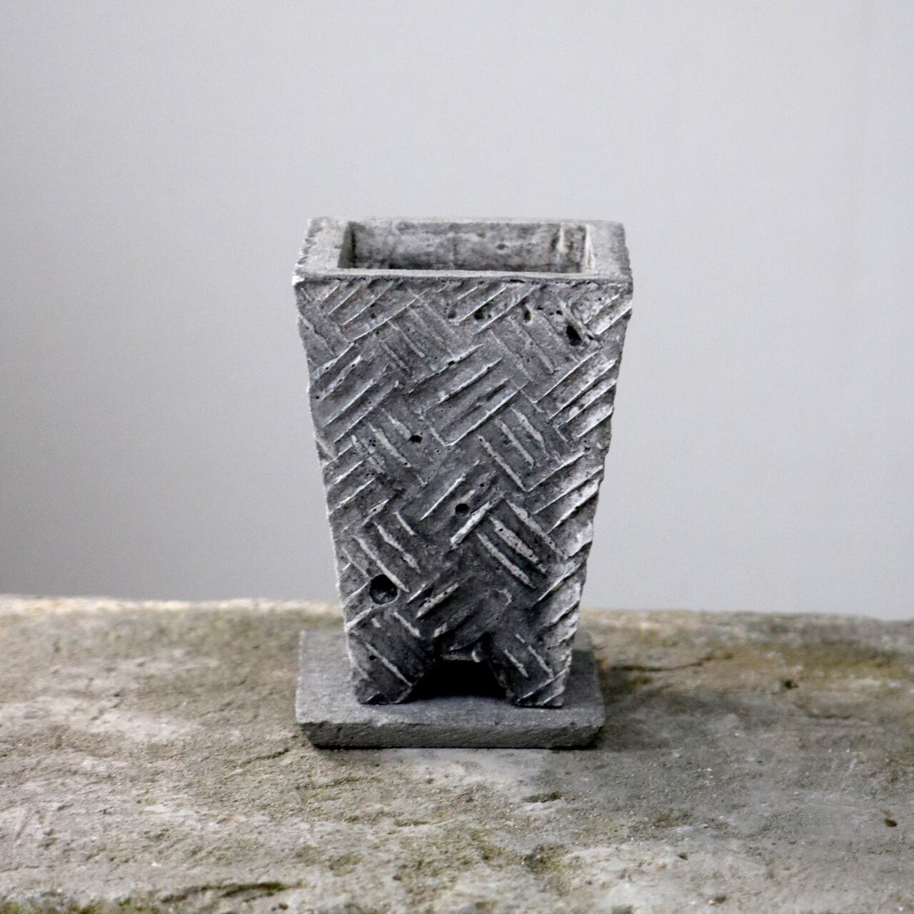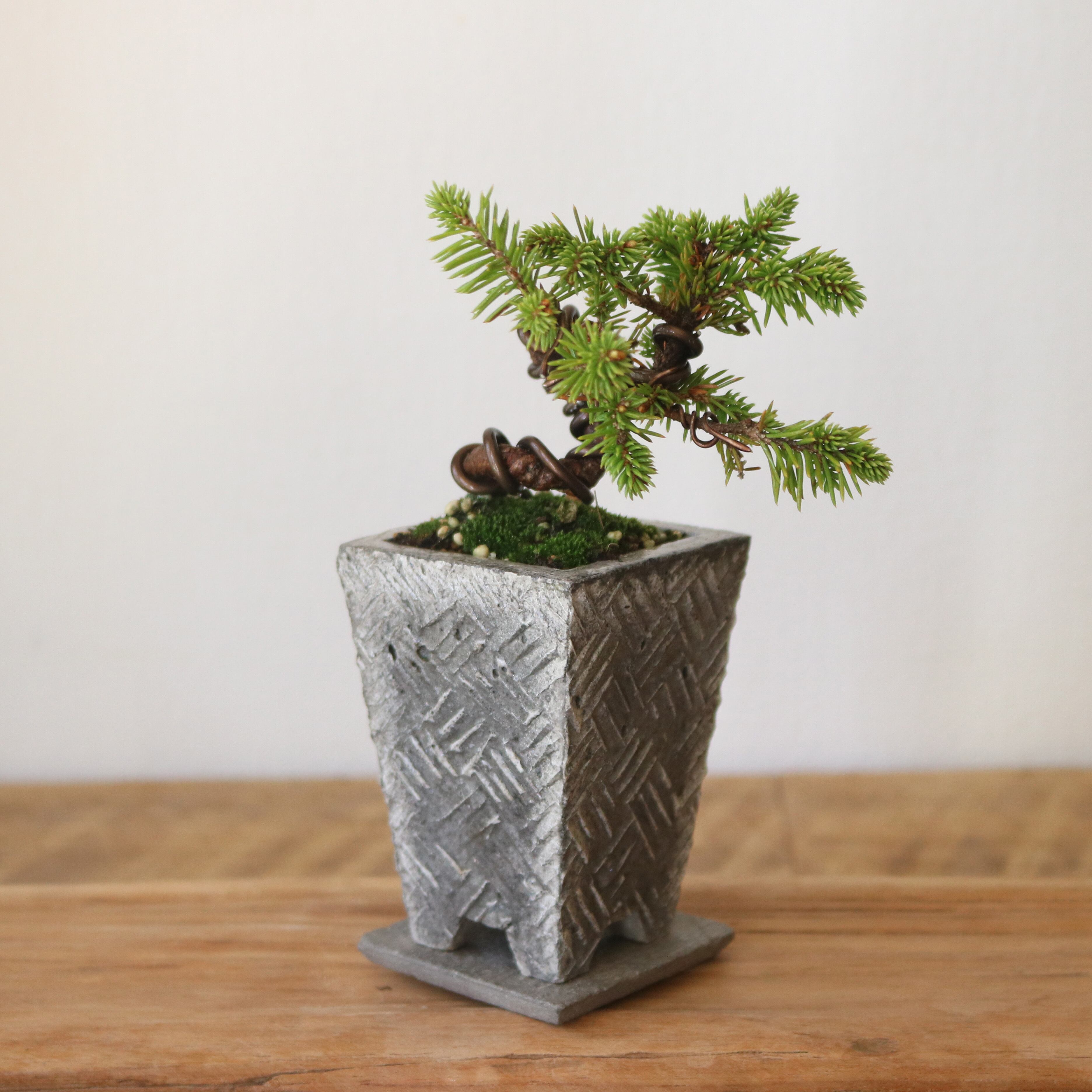グリーンをこよなく愛するロビー。そんな彼が今注目しているのは「日本の盆栽」。日本古来の伝統美をリスペクトしつつ、現代のライフシーンに融合する新たな素材とテイストで開発されたのが、このNeo Japonism ミニ盆栽鉢シリーズ。その中の一つ「The 網代格子」は「漁網」が由来の日本に古来から受け継がれる伝統紋様。古くから広く民衆に親しまれてきた紋様です。ロビーはその日本古来の古典柄をセメントという現代的素材と融合させ、ミニ盆栽鉢シリーズとして展開。日本のライフシーンを考慮し、机上などの狭いスペースでも気軽にグリーンが楽しめるスリムな設計。個性的なルックスだけでなく、小さいながらも保水性や水捌けもしっかり考慮し植物にも優しい。鉢サイズに見合ったグリーンを植えるだけで、いとも簡単に「侘び寂び」が表現できる。また、ミニ鉢と統一感のあるプレートもセットに。そのクールな世界観はロビーならでは。一つ一つ丁寧にロビー本人が仕上げた逸品。ギフト・プレゼントにも最適。