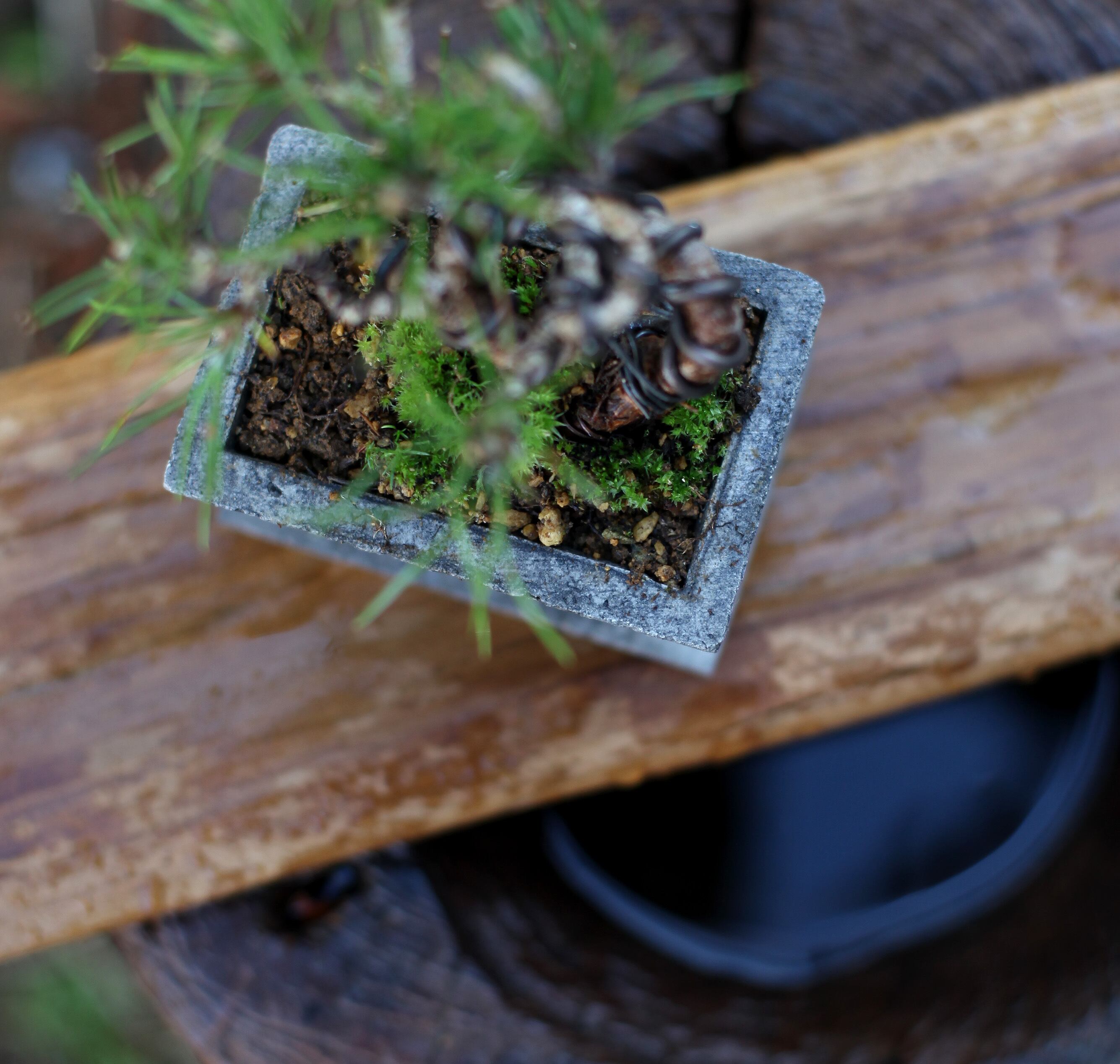 デメリットでもあるセメントの通気性の悪さ。ミニサイズの鉢にとっては逆に好都合なんだよ。乾きがちなミニポットにとって、乾燥対策はとても重要だからね。