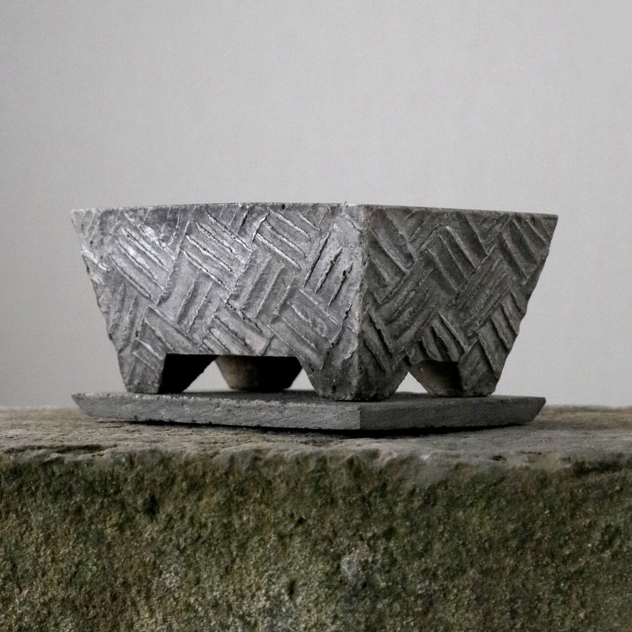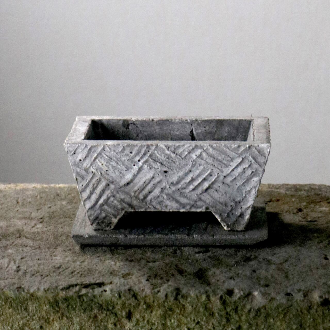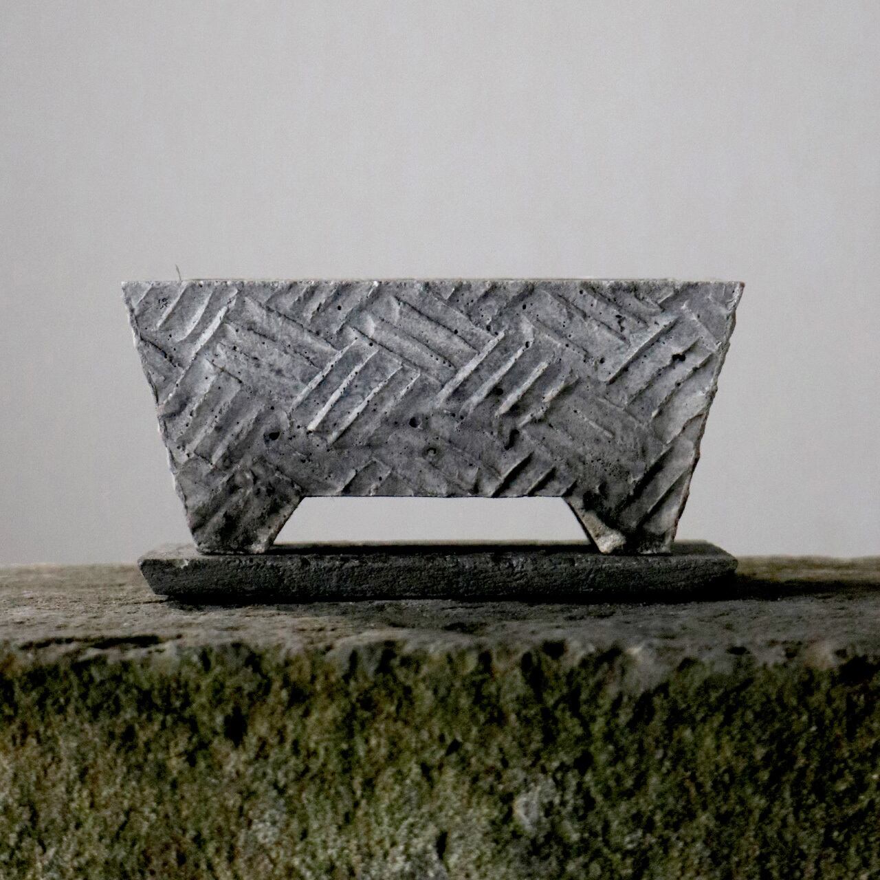 グリーンをこよなく愛するロビー。そんな彼が今注目しているのは「日本の盆栽」。日本古来の伝統美をリスペクトしつつ、現代のライフシーンに融合する新たな素材とテイストで開発されたのが、このNeo Japonism ミニ盆栽鉢シリーズ。その中の一つ「The 網代格子」は「漁網」が由来の日本に古来から受け継がれる伝統紋様。古くから広く民衆に親しまれてきた紋様です。ロビーはその日本古来の古典柄をセメントという現代的素材と融合させ、ミニ盆栽鉢シリーズとして展開。日本のライフシーンを考慮し、机上などの狭いスペースでも気軽にグリーンが楽しめるスリムな設計。個性的なルックスだけでなく、小さいながらも保水性や水捌けもしっかり考慮し植物にも優しい。鉢サイズに見合ったグリーンを植えるだけで、いとも簡単に「侘び寂び」が表現できる。また、ミニ鉢と統一感のあるプレートもセットに。そのクールな世界観はロビーならでは。一つ一つ丁寧にロビー本人が仕上げた逸品。ギフト・プレゼントにも最適。