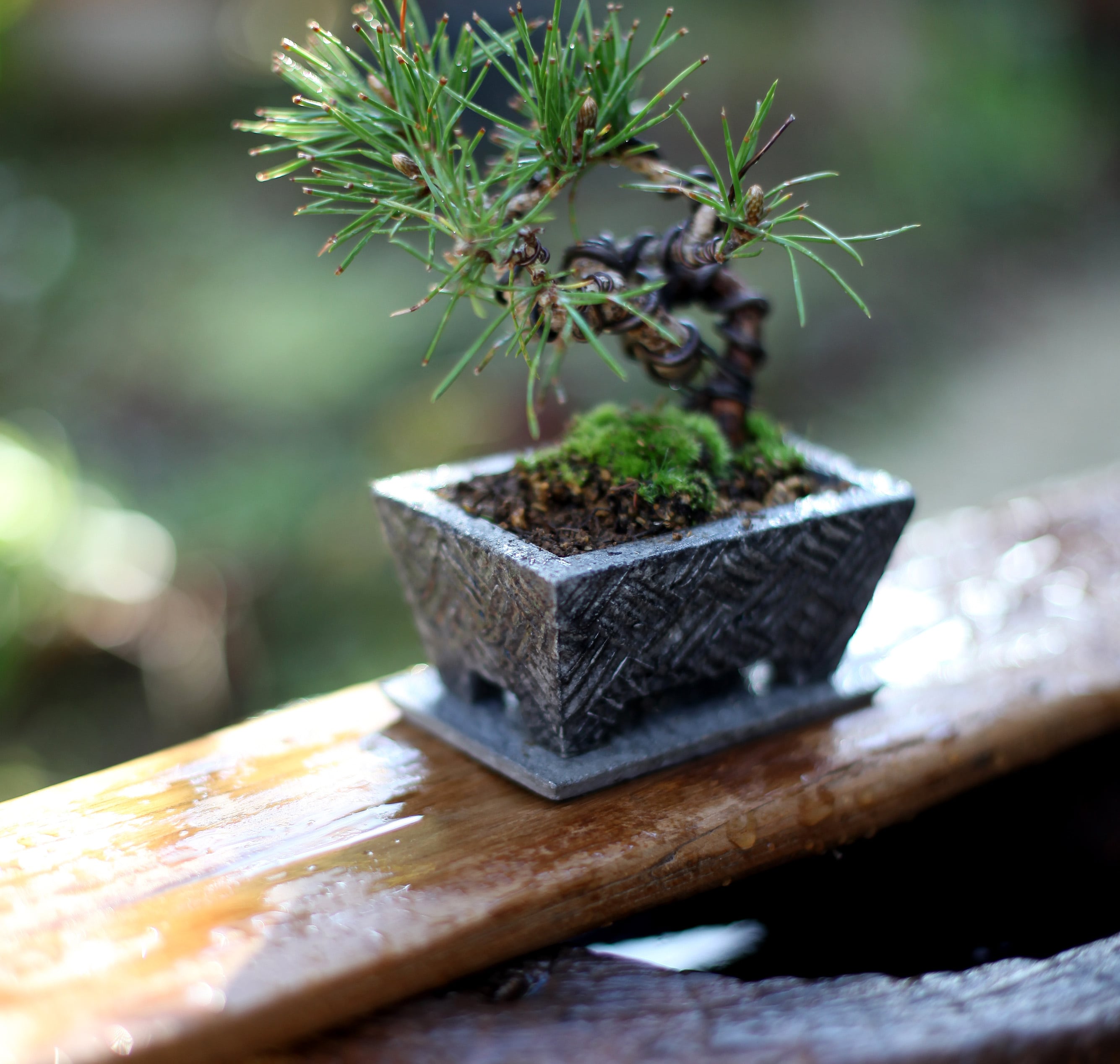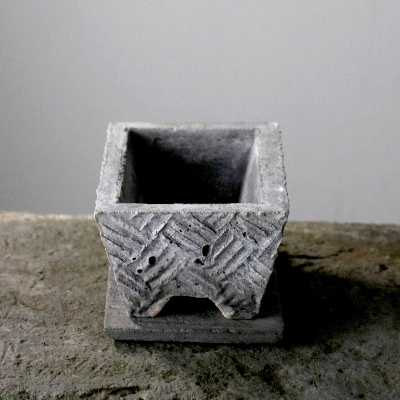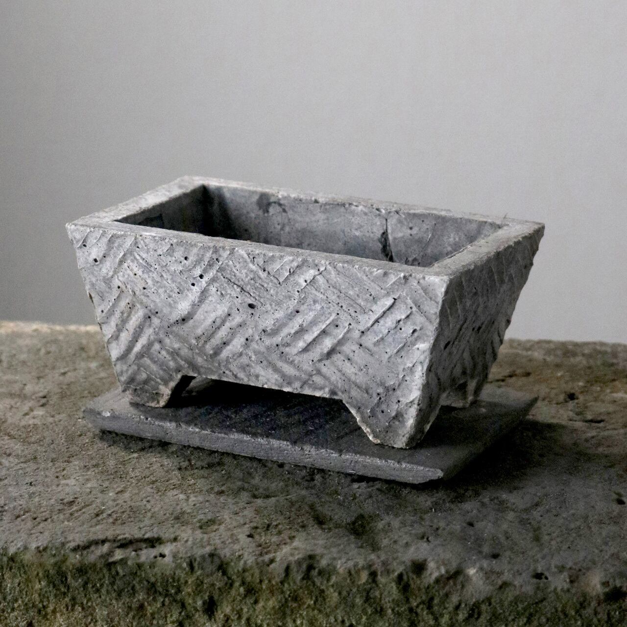 グリーンをこよなく愛するロビー。そんな彼が今注目しているのは「日本の盆栽」。日本古来の伝統美をリスペクトしつつ、現代のライフシーンに融合する新たな素材とテイストで開発されたのが、このNeo Japonism ミニ盆栽鉢シリーズ。その中の一つ「The 網代格子」は「漁網」が由来の日本に古来から受け継がれる伝統紋様。古くから広く民衆に親しまれてきた紋様です。ロビーはその日本古来の古典柄をセメントという現代的素材と融合させ、ミニ盆栽鉢シリーズとして展開。日本のライフシーンを考慮し、机上などの狭いスペースでも気軽にグリーンが楽しめるスリムな設計。個性的なルックスだけでなく、小さいながらも保水性や水捌けもしっかり考慮し植物にも優しい。鉢サイズに見合ったグリーンを植えるだけで、いとも簡単に「侘び寂び」が表現できる。また、ミニ鉢と統一感のあるプレートもセットに。そのクールな世界観はロビーならでは。一つ一つ丁寧にロビー本人が仕上げた逸品。ギフト・プレゼントにも最適。