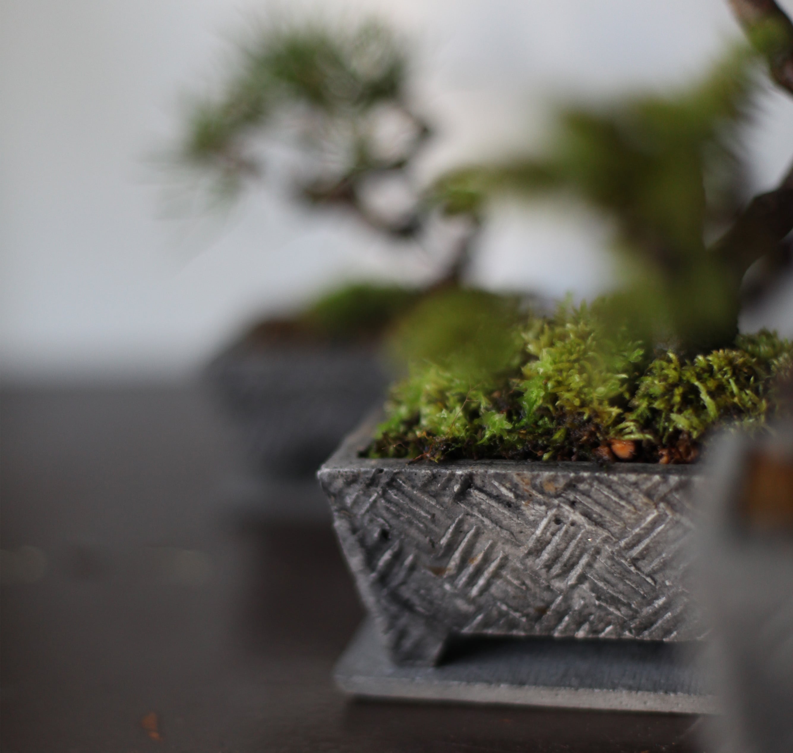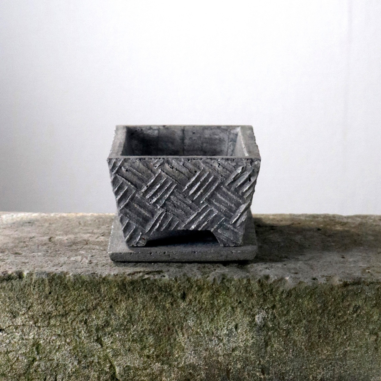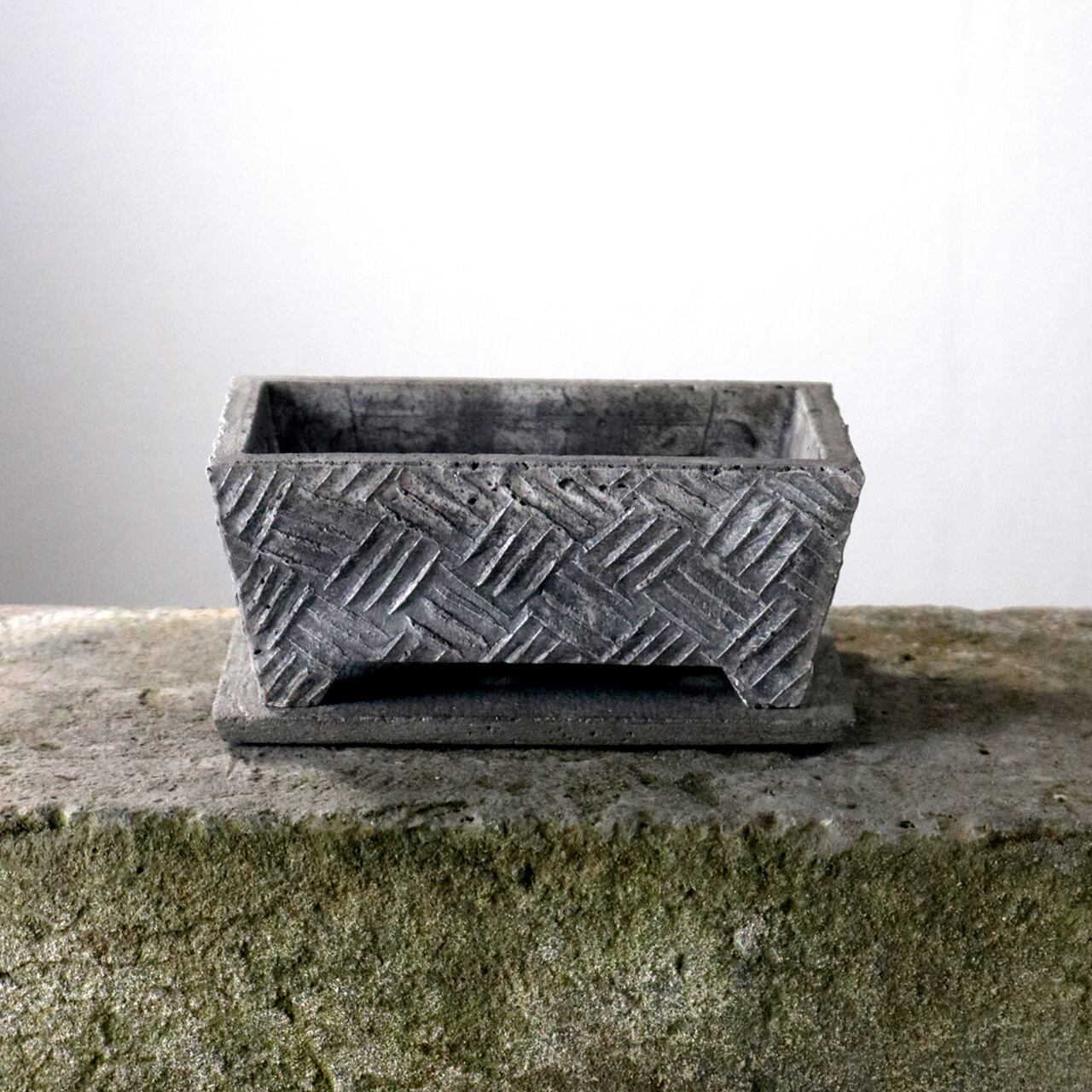 グリーンをこよなく愛するロビー。そんな彼が今注目しているのは「日本の盆栽」。日本古来の伝統美をリスペクトしつつ、現代のライフシーンに融合する新たな素材とテイストで開発されたのが、このNeo Japonism ミニ盆栽鉢シリーズ。その中の一つ「The 網代格子」は「漁網」が由来の日本に古来から受け継がれる伝統紋様。古くから広く民衆に親しまれてきた紋様です。ロビーはその日本古来の古典柄をセメントという現代的素材と融合させ、ミニ盆栽鉢シリーズとして展開。日本のライフシーンを考慮し、机上などの狭いスペースでも気軽にグリーンが楽しめるスリムな設計。個性的なルックスだけでなく、小さいながらも保水性や水捌けもしっかり考慮し植物にも優しい。鉢サイズに見合ったグリーンを植えるだけで、いとも簡単に「侘び寂び」が表現できる。また、ミニ鉢と統一感のあるプレートもセットに。そのクールな世界観はロビーならでは。一つ一つ丁寧にロビー本人が仕上げた逸品。ギフト・プレゼントにも最適。