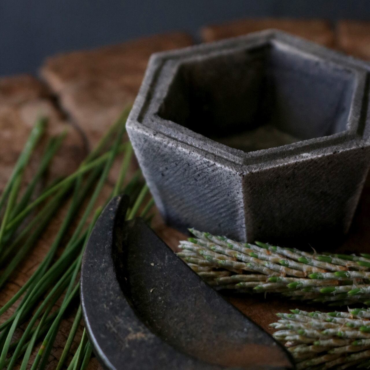 豆鉢|セメント仕様_盆栽や観葉植物に最適|ロビー・ハンソンのハンドクラフト_六角_01