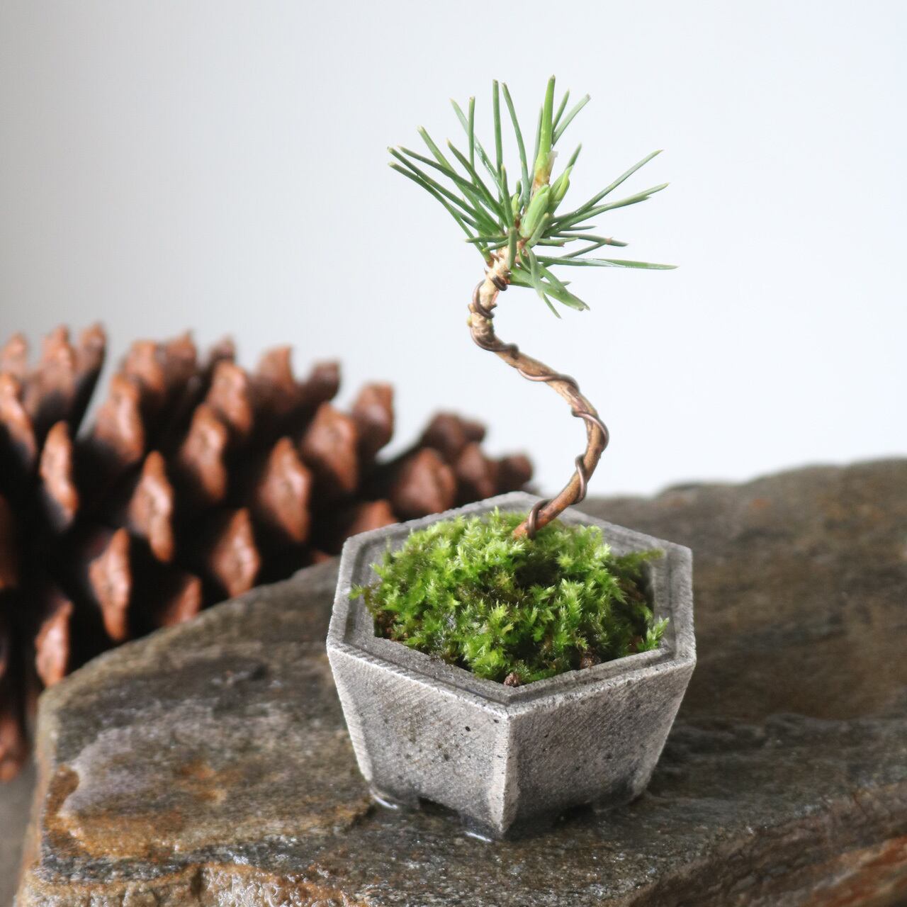 ・松柏を植えてミニ盆栽にしてみたり、